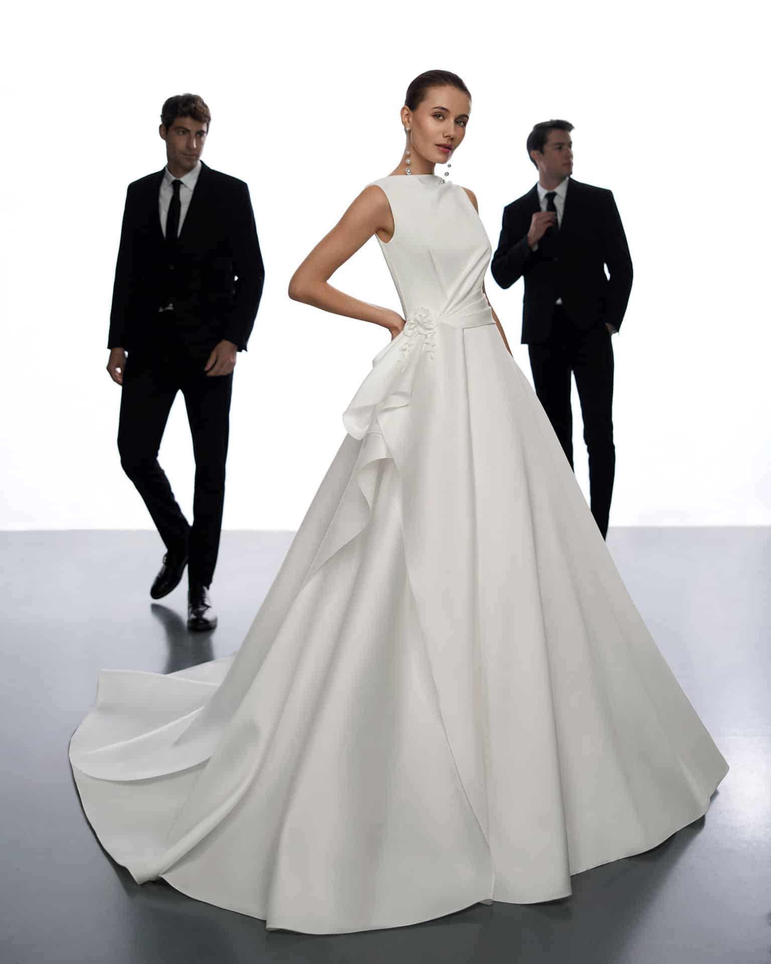 Rosa Clará is a Spanish bridal designer celebrated for her refined elegance, modern femininity and exceptional craftsmanship. Each gown blends clean, contemporary lines with delicate detailing, creating designs that feel effortlessly sophisticated.